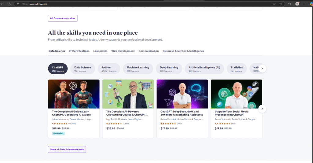 - Portfolio Boost: If you’re learning skills like coding, design, marketing, or writing, Udemy projects and certificates can enhance your resume or online portfolio.